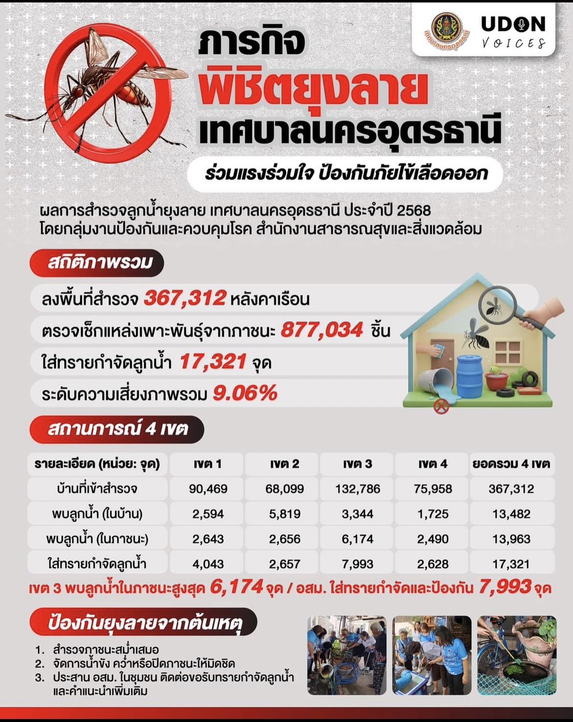 ภารกิจพิชิตยุงลาย เทศบาลนครอุดรธานี "รวมแรงรวมใจ ป้องกันภัยไข้เลือดออก"