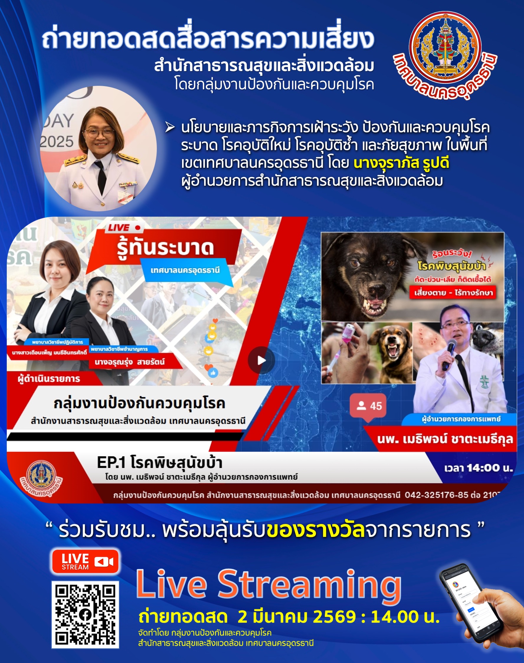 ถ่ายทอดสดสื่อสารความเสี่ยง สำนักสาธารณสุขและสิ่งแวดล้อม โดย กลุ่มงานป้องกันและควบคุมโรค